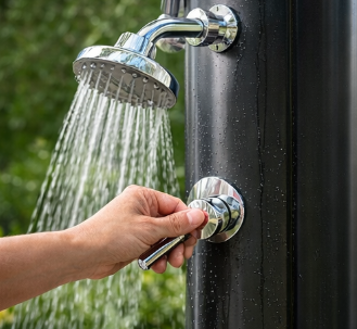 Den LY18L01 is equipped with a large rain shower head that provides a refreshing shower experience with a wide spray. The shower head is adjustable up to 180° via its integrated ball joint, allowing users to customize the direction of the water flow. Whether you prefer a direct, focused stream or a gentler, more dispersed spray, the adjustable rain shower head delivers a satisfying and personalized experience. The large shower head adds to the luxurious feeling of the LY18L01, making it perfect for those who want to feel like they are under a gentle rainfall while enjoying a soothing outdoor shower. This feature enhances the overall shower experience, making it a desirable choice for homeowners and businesses alike.
