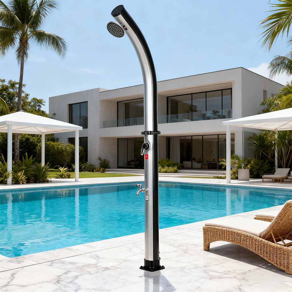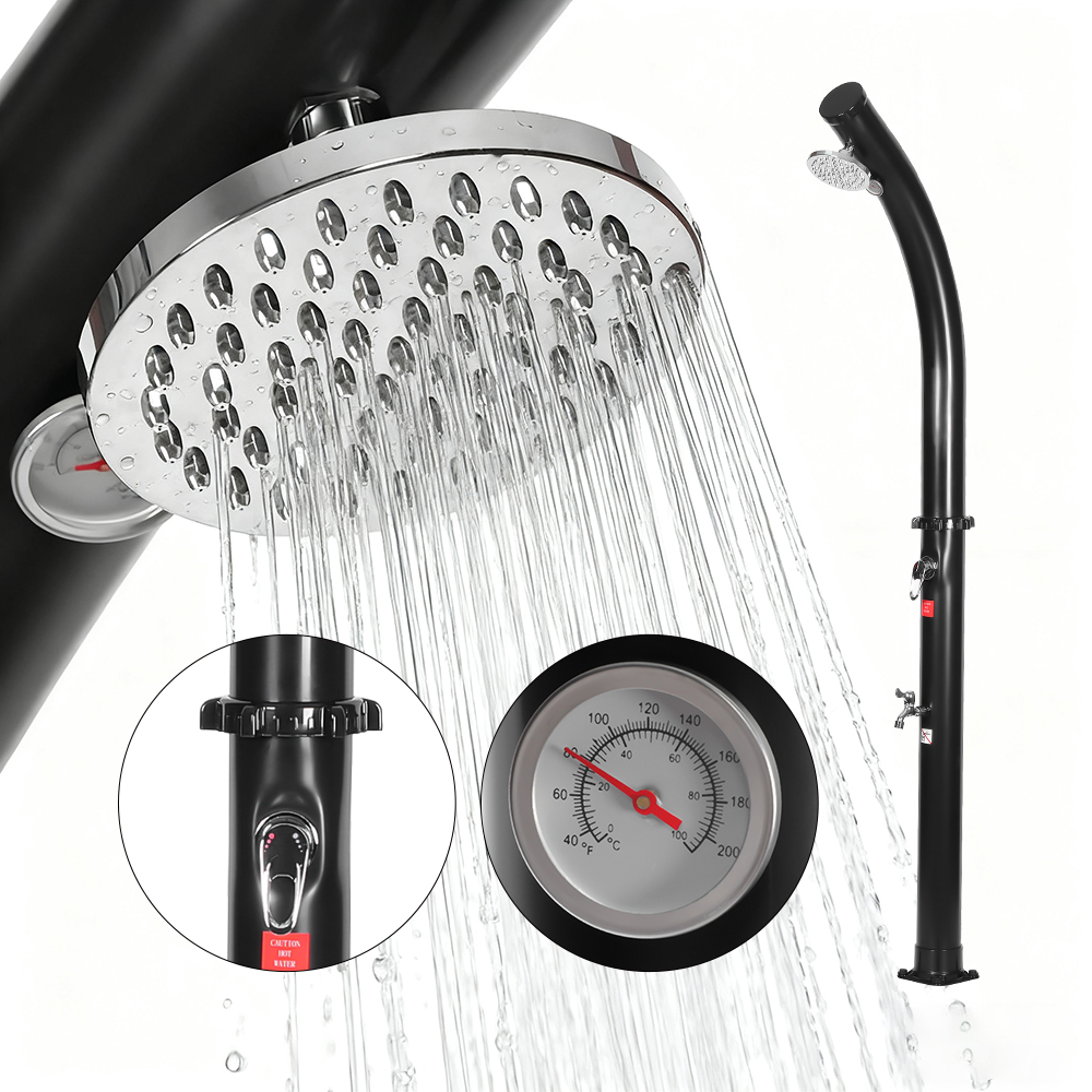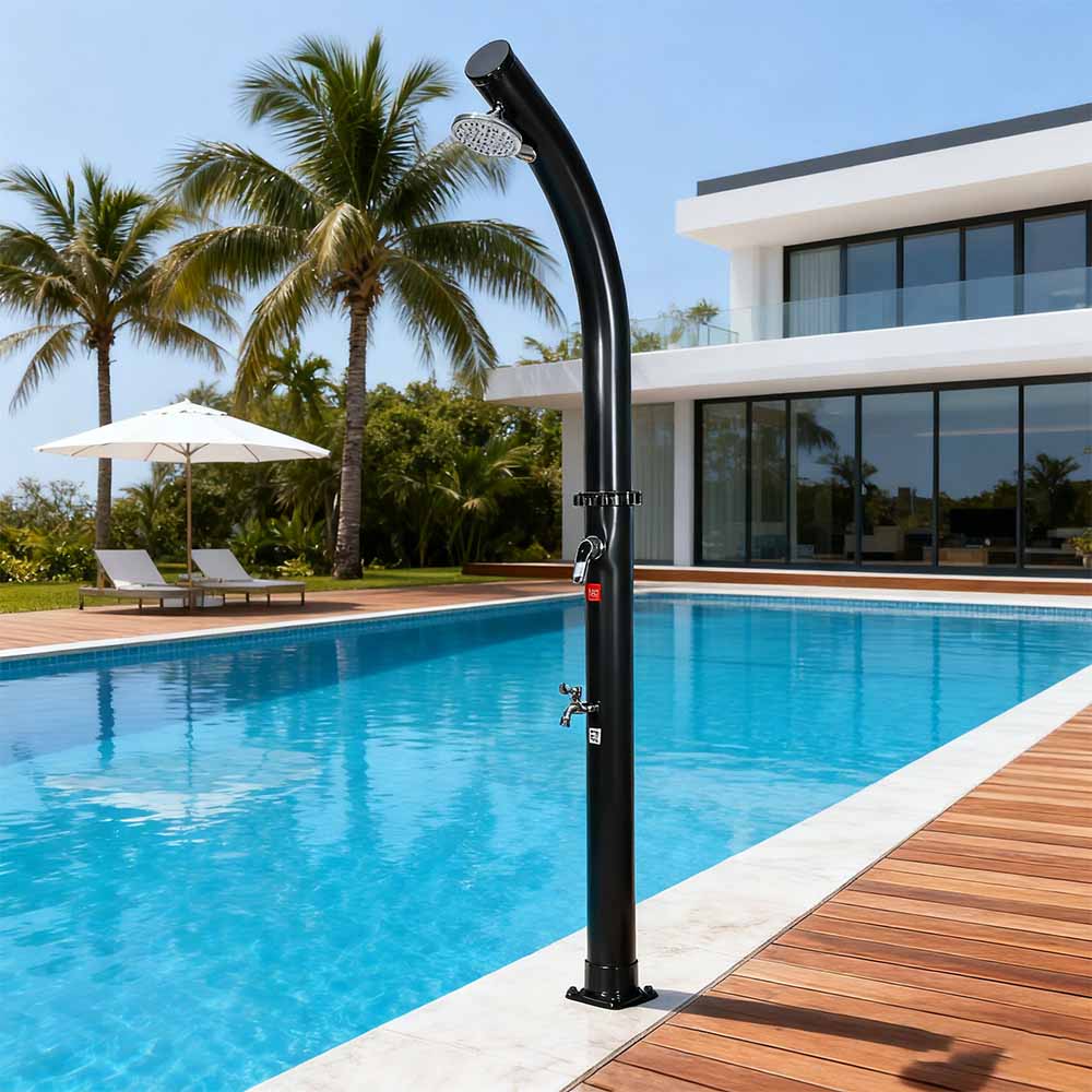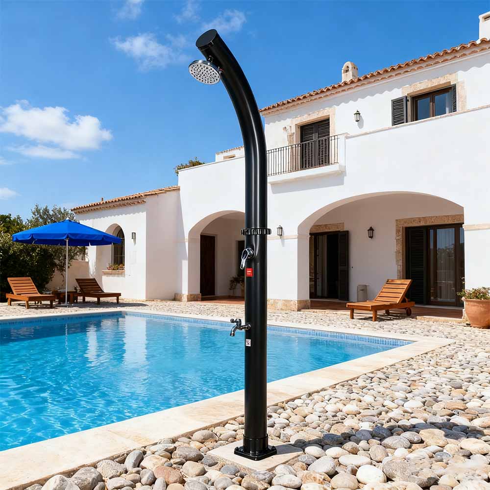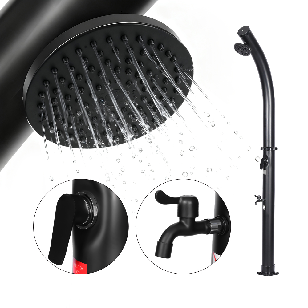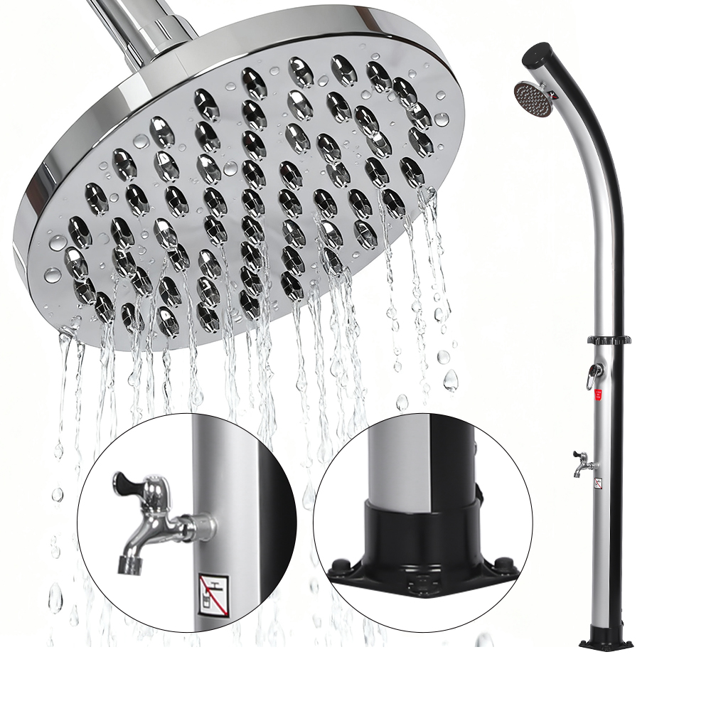 Efter att du har fyllt på duschröret via en trädgårdsslang värms vattnet naturligt upp i solen, och den integrerade kopplingen möjliggör enkel justering till din föredragna temperatur. Designad för mångsidighet, denna LY18L02 18L fristående böjda kroppsdusch med solenergi utomhuspool med duschhuvud är perfekt för strandutflykter, avkoppling vid poolen eller landsbygdsresor, vilket gör den till ett utmärkt val för hotell, semesterhus och bungalower för att ge uppfriskande komfort var som helst. Den är också utrustad med en bekväm slanganslutning för enkel påfyllning och en avtappningsplugg för snabb tömning, vilket garanterar säker och enkel förberedelse för vinterförvaring.