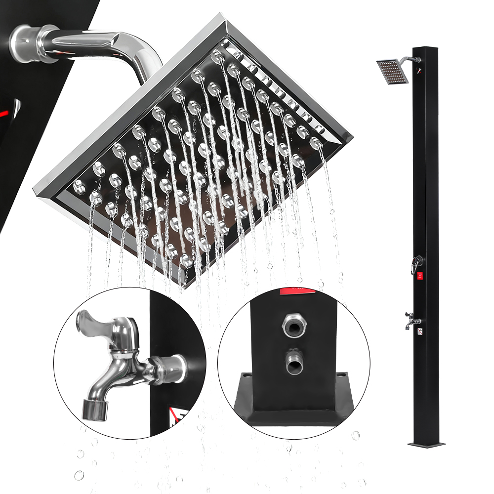 Denna LY18L08-SS justerbara integrerade UV-beständiga soldusch är genomtänkt designad för både komfort och praktisk. Dess generöst tilltagna regnduschhuvud, utrustat med en integrerad kulled, kan vridas upp till 180°, vilket gör att du kan justera vinkeln för en njutbar och uppfriskande duschupplevelse. Enheten är tillverkad av UV-beständig plast och är hållbar och kan snabbt demonteras för enkel transport eller förvaring när den inte används. Den robusta basen, gjord av rostfritt stål, ABS, koppar och andra pålitliga material, säkerställer en säker och stabil installation även på olika utomhusytor. Det är enkelt att använda duschen – fyll bara duschröret med en vanlig trädgårdsslang, låt solen naturligt värma vattnet och använd sedan den integrerade kranen för att justera temperaturen efter dina önskemål, vilket skapar en bekväm och trevlig utomhusduschupplevelse.