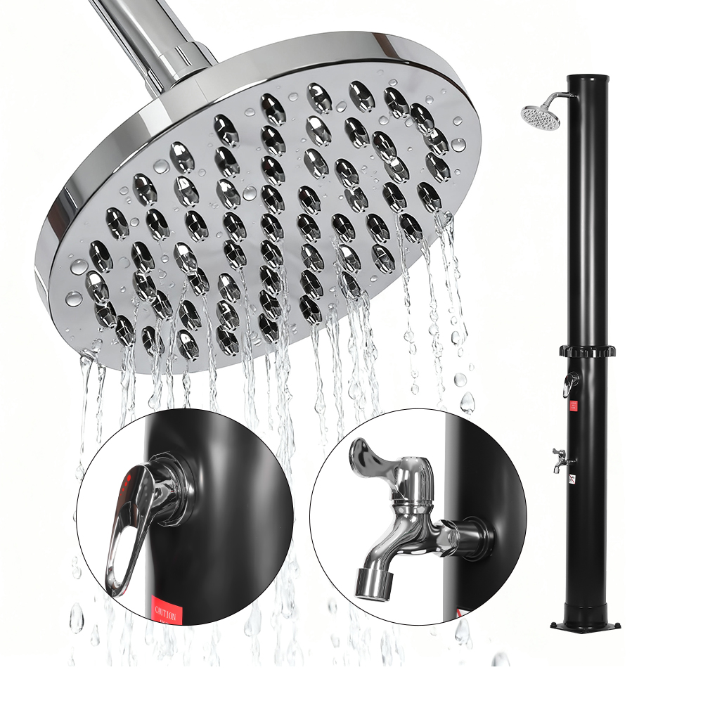 Denna LY35L01 utomhus trädgårdssoldusch med duschrör med stor kapacitet är designad för familjevänlig utomhusbruk, med ett generöst stort duschrör som kan värma vatten till cirka 60°C i starkt solljus utan att behöva någon el. Anslut bara en vanlig trädgårdsslang för att fylla duschröret, så kan alla njuta av en uppfriskande dusch i trädgården, vid poolen eller på en camping. För extra bekvämlighet inkluderar den en inbyggd metallbricka för att hålla duschgel eller andra småsaker inom räckhåll, medan ett dräneringshål i botten säkerställer jämnt vattenflöde och förhindrar stående vatten. När den inte används kan duschen enkelt tas isär för kompakt förvaring, vilket gör den praktisk för säsongsanvändning eller transport till olika platser.